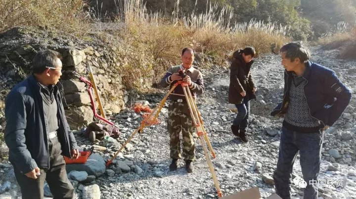 王新法(中)做桥梁的前期勘测工作