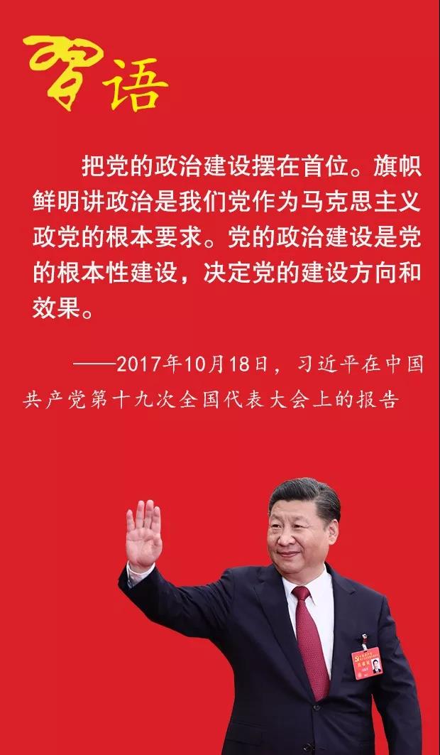把党的政治建设摆在首位。旗帜鲜明讲政治是我们党作为马克思主义政党的根本要求。党的政治建设是党的根本性建设,决定党的建设方向和效果。保证全党服从中央,坚持党中央权威和集中统一领导,是党的政治建设的首要任务。全党要坚定执行党的政治路线,严格遵守政治纪律和政治规矩,在政治立场、政治方向、政治原则、政治道路上同党中央保持高度一致。