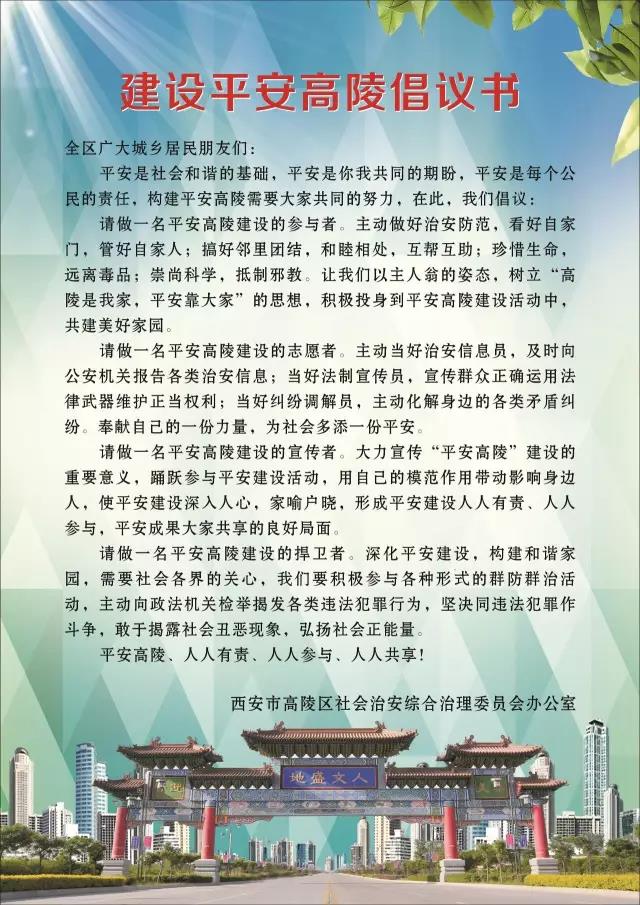 建设平安高陵倡议书